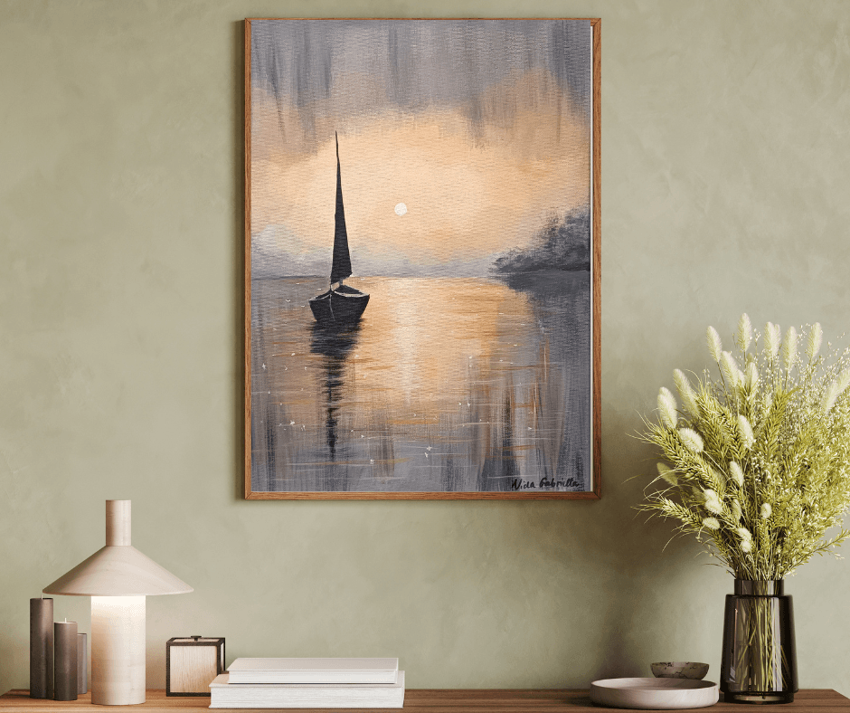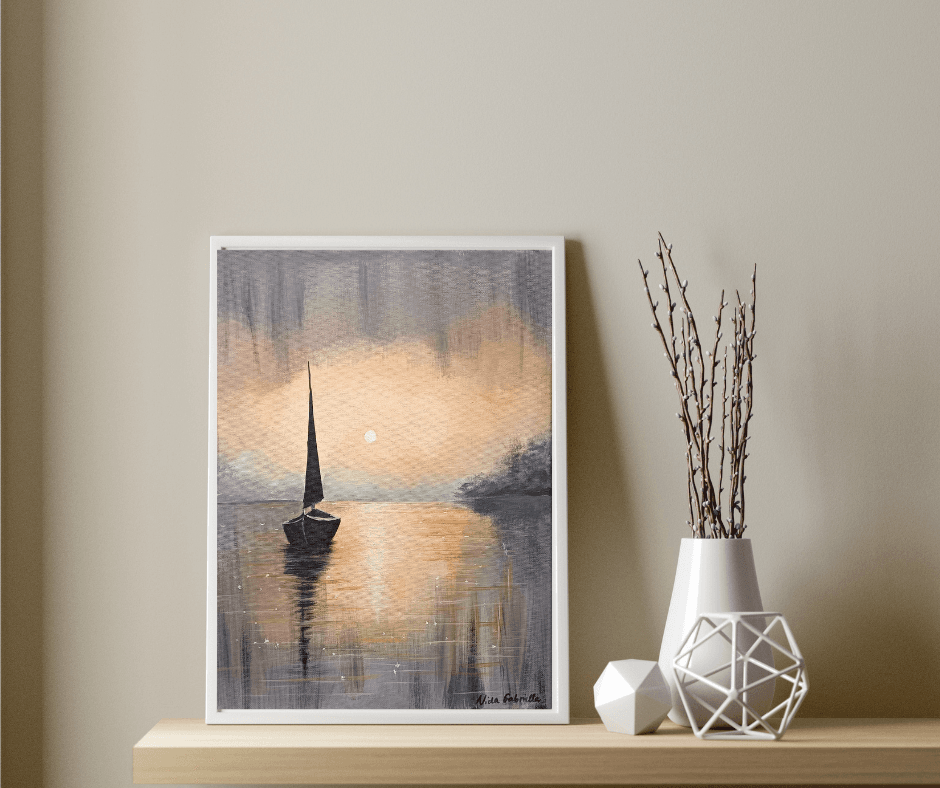 A festmény ideális választás nappaliba, hálószobába vagy irodába. Az Absztrakt Balaton 1. festmény otthonos atmoszférát teremthet ezekben a helyiségekben.