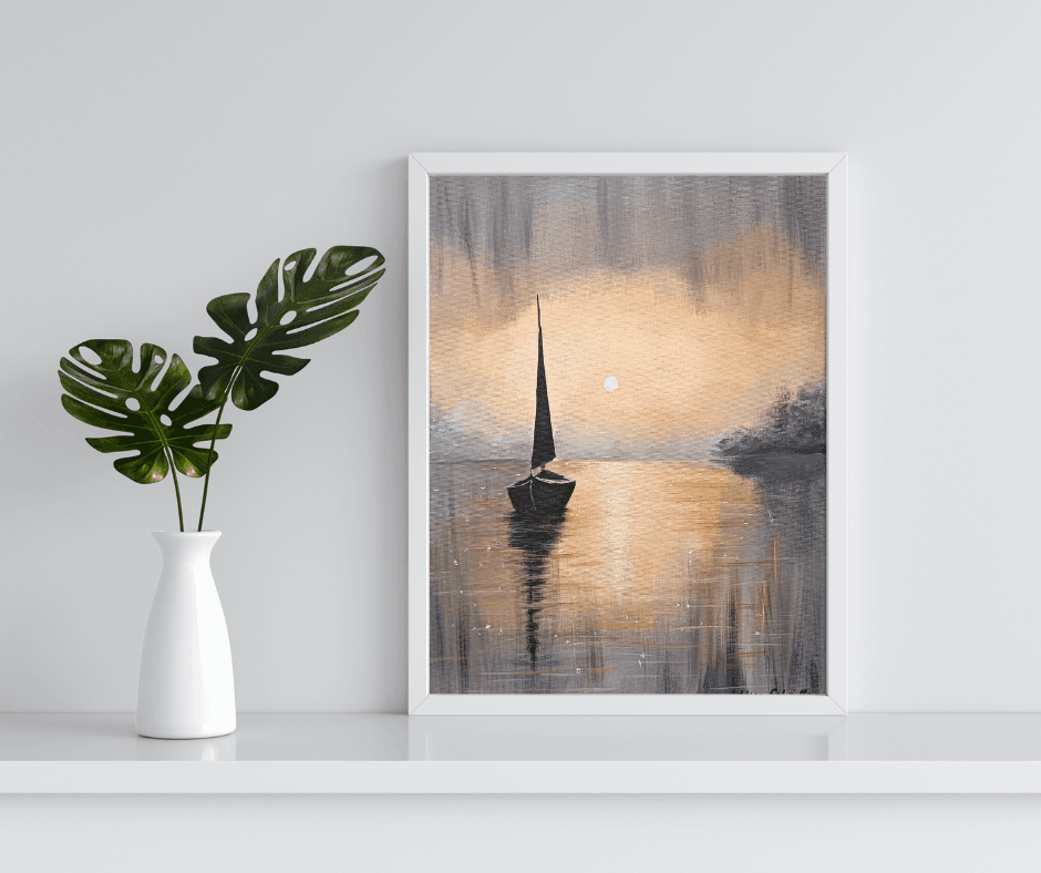 Ez az alkotás egy belső állapot vagy érzet vizuális lenyomata. Az ember és a környezete közötti érzelmi, filozófiai és szimbolikus kapcsolat kifejezése. Elhajózás a messzeségbe, vagy éppen érkezés a biztos pontra. Pszichológiai szempontból nézve segít a stressz csökkentésében, lehetőséget adva a nézőnek a mentális elvonulásra. Az Absztrakt Balaton 1. festmény kifejezetten alkalmas meditációhoz és feltöltődéshez is.