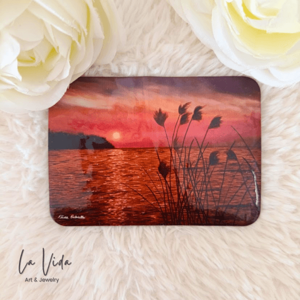 Vida Gabriella Balaton náddal festményének hűtőmágnesre való lenyomata.