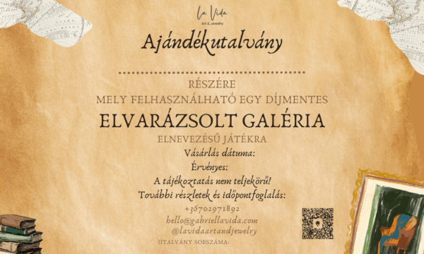 Családi, baráti vetélkedő, közös időtöltés egy fantasztikus, fejtörő játékban. Szabadulj ki az elhagyatott galériából, miközben rálelsz a festőművész titkos kincsére! Izgalmas, csapatépítő, vagy akár születésnapi program Balatonmáriafürdőn, Somogy megyében.