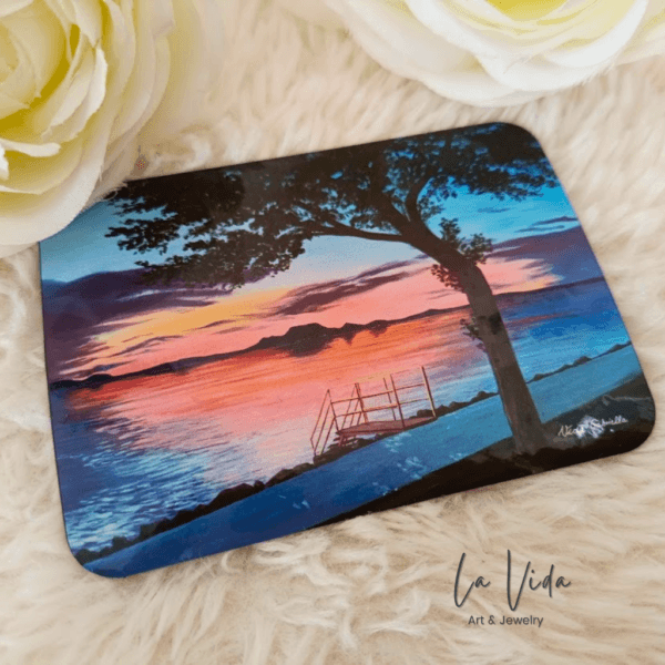 Vida Gabriella Fonyódi naplemente festményének hűtőmágnesre való lenyomata.
