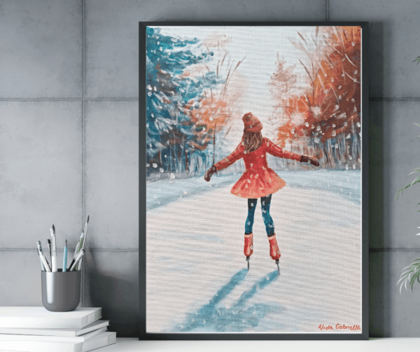 Ez az alkotás egy belső állapot vagy érzet vizuális lenyomata. Korcsolyázással járó móka vásznon való megjelenítése.