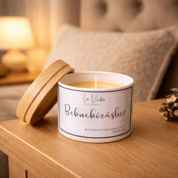 Szójaviasz gyertya Bekuckózáshoz felirattal.